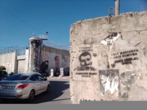 Il reste toujours dans nos pensées. Ainsi, nous avons peint au pochoir son visage ainsi que les noms de Marianna et Dimitra sur le mur de l’apartheid. Un mur qui sape et menace la vie des Palestinien-nes, tout en révélant les signes de la résistance, les signes du feu et en portant des slogans pour un monde libre au milieu des visages de tant de personnes qui ont donné leur vie pour la justice. C’est là que se trouve le sourire de Kyriakos, qui nous regarde d’en haut.