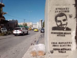 Un an après la perte de notre ami et compagnon, le combattant anarchiste armé Kyriakos Xymitiris, nous voulons garder vivante sa mémoire révolutionnaire et exprimer notre solidarité avec les compagnonnes anarchistes emprisonnés Marianna Manoura, Dimitra Zarafeta et les autres personnes persécutées dans la même affaire.