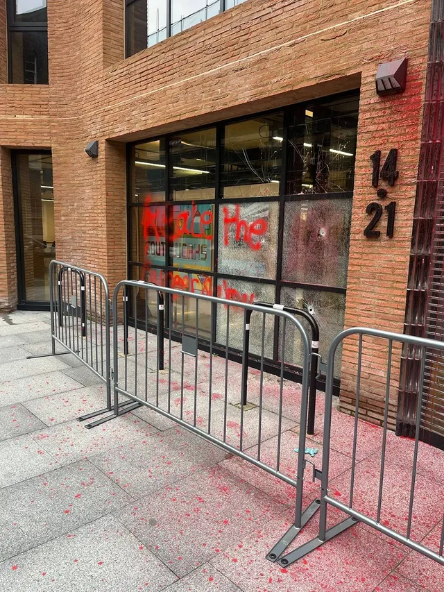 Autour du 19 novembre, Shut the System a vandalisé les bureaux de l’institut de Tony Blair à Londres (UK), brisant des vitres et recouvrant la façade de peinture rouge à l’extincteur. Celui-ci est impliqué dans l’entité coloniale faisant partie du plan américain-israélien pour le futur de Gaza et sa gouvernance. Suivant les propositions de Trump, Tony Blair et son institut ont avancé des propositions pour expulser les palestinien-nes de Gaza afin de la transformer en une destination pour les touristes et les investissements des élites. [Shut the System]